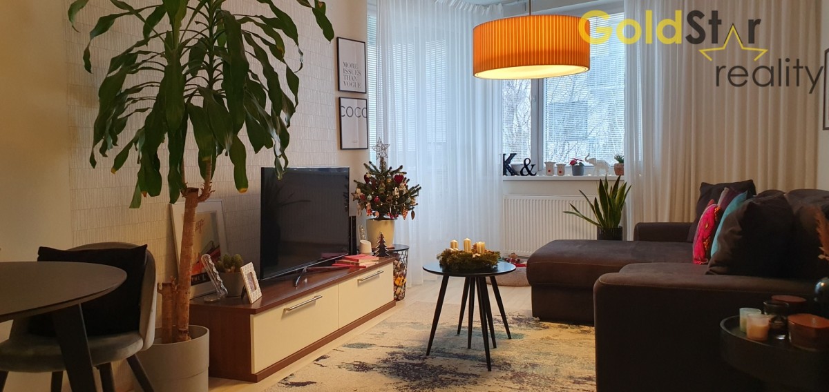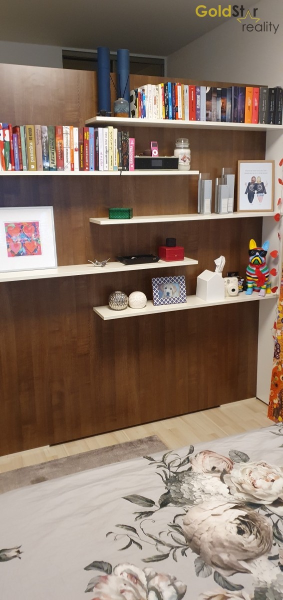 Dispozice bytu je svým uspořádáním vhodná pro mladý pár, ale i rodinu s dítětem a sestává se z obývacího pokoje, ložnice, chodby, koupelny s sociální zařízení WC, komory a balkonu. Byt je vhodný také jako investiční příležitost, neboť výnosová hodnota z pronájmu je v této lokalitě vysoká. Okna mají západní orientaci.