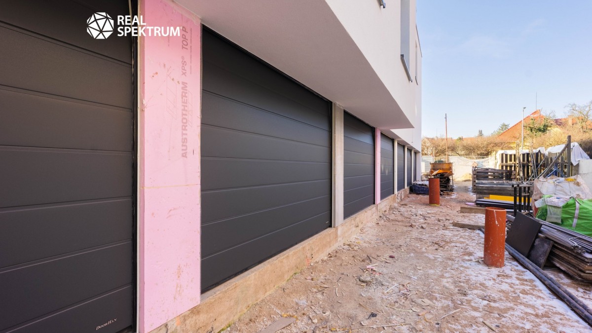 Dispozice: zádveří (3, 6 m²), chodba (6, 6 m²), pokoj s kuchyňským koutem (29, 1 m²), pokoj (13, 5 m²), koupelna s sociální zařízení WC (4, 8 m²), balkon (4, 0 m²), sklepní kóje (3, 3 m²), garáž (17, 7 m²)