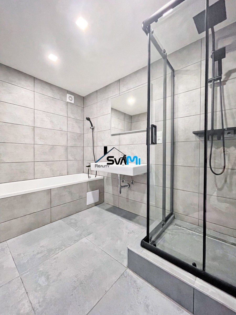 Rekonstrukce bytu zahrnuje kompletní elektro - instalaci, voda a odpady v plastu, vyzděný sprchový kout či vana (dle výběru), umístění sanity, pokládka plovoucích podlah a dlažby, ve všech pokojích sádro - kartonové snížení stropu, bodové osvětlení, vyzdění bytového jádra, umístění kuchyňské linky na míru s vestavěnými spotřebiči, nové bezpečností vchodové dveře, vyhřívaná podlaha v obýváku, dostatek zásuvek a rozvod internetové připojeníu do každé místnosti.