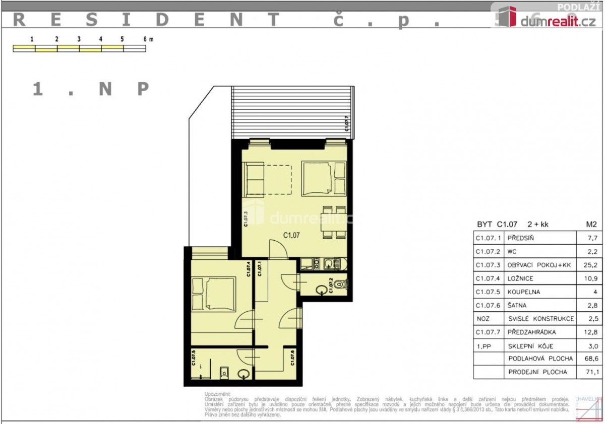 2+kk, 60 m2, skeletová, OV, 1. podlaží