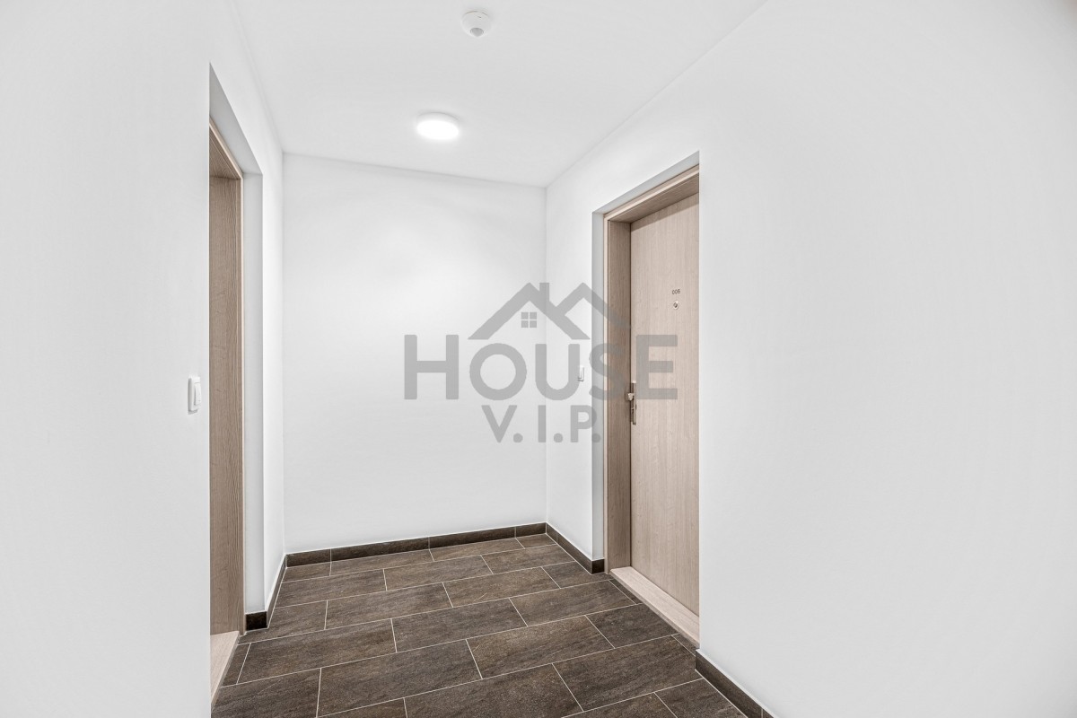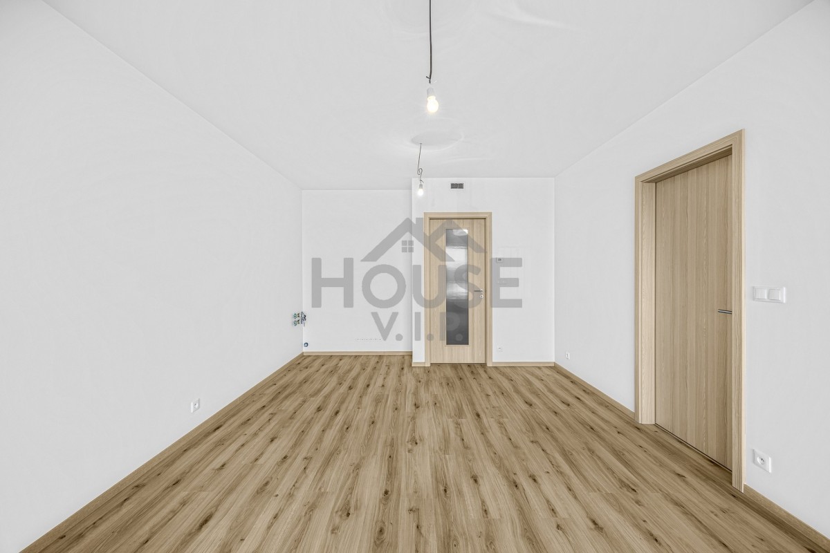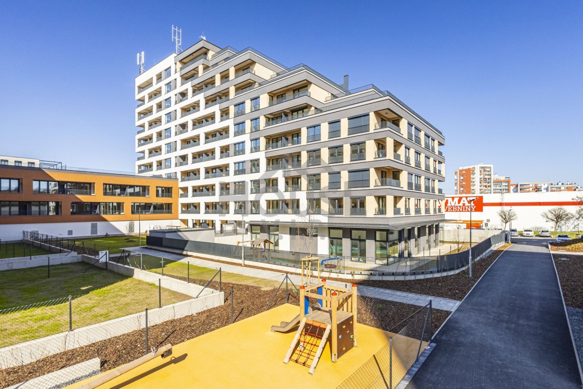 Dispozice nabízí prostorný a světlý obývací pokoj s přípravou na kuchyňskou linku, ložnici s přímým vstupem na terasu, koupelnu s vanou, umyvadlem, toaletou a přípravou na pračku i sušičku, předsíň s prostorem pro vestavěnou skříň a praktickou místnost o velikosti 4, 6 m², kterou lze využít jako šatnu nebo domácí pracovnu.