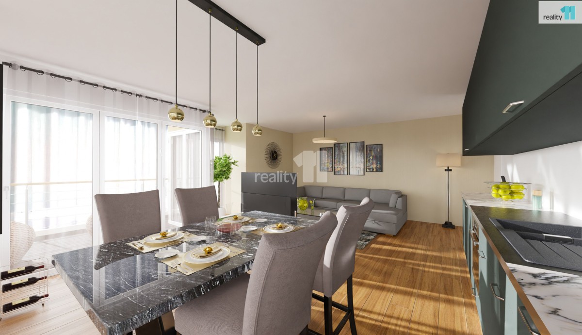 Bytové jednotky umístěné v 1 - 6NP (šesté nadzemní patro), v dispozici 2+kk o výměře od 60 m² + sklepní kóje a vyhrazené vnitřní parkovací stání v ceně.