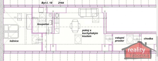 Byt č. 18 - ...="2 pokoje + kuchyňský kout">2+kk o výměře 60, 28 m2 za cenu 6, 950. 000, - Kč. K bytu náleží jedno zamykatelné parkovací stání před domem. .