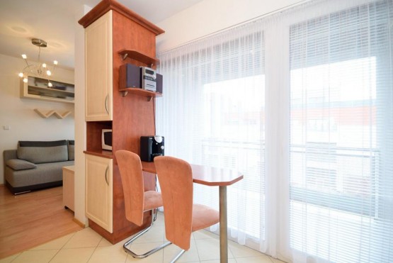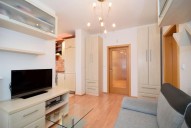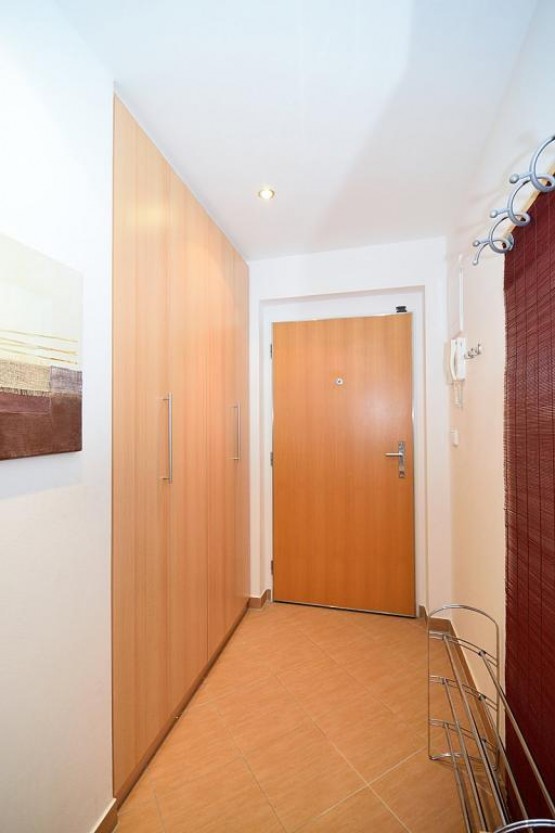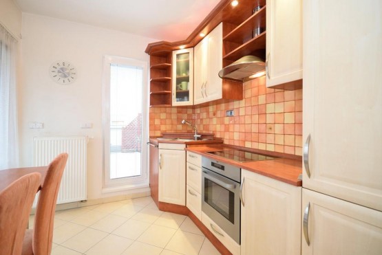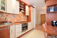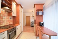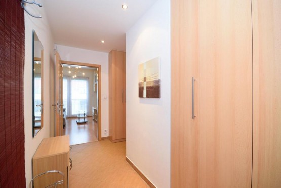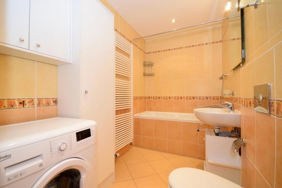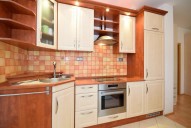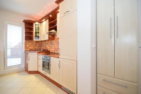 V bytě zůstává vybavená kuchyňská linka se spotřebiči a nábytek na míru - vestavěné skříně, nábytek v obývacím pokoji, další úložné prostory.