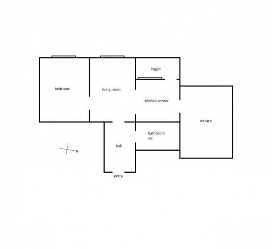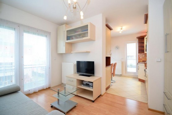 Útulný byt má obývací pokoj s kuchyní do tvaru "L", samostatnou ložnici, prostornou koupelnu s vanou , sociální zařízení WC v koupelně a předsíň s úložnými prostory.