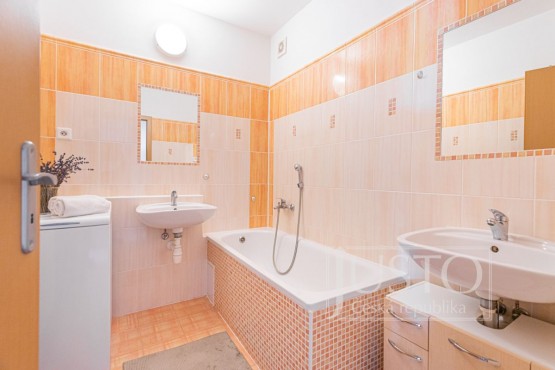 Další přidaná hodnota tohoto bytu jsou vestavěné skříně v ložnici, dvě umyvadla v koupelně a klid v okolí domu. V případě nutnosti můžete dispozici bytu upravit na 2+1.