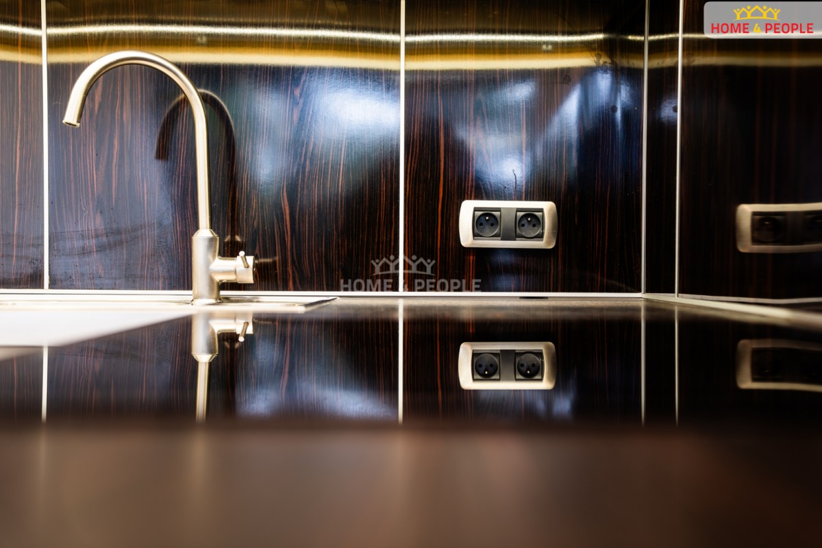 Byt o obytné ploše 62 m² se vyznačuje velkorysým proskleným prostorem, vysokými stropy a nadčasovým designem, díky čemuž působí vzdušně a elegantně.