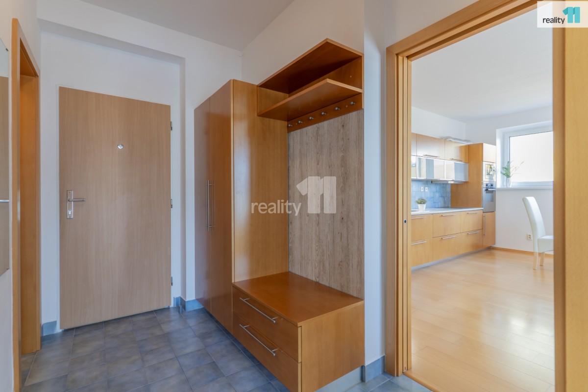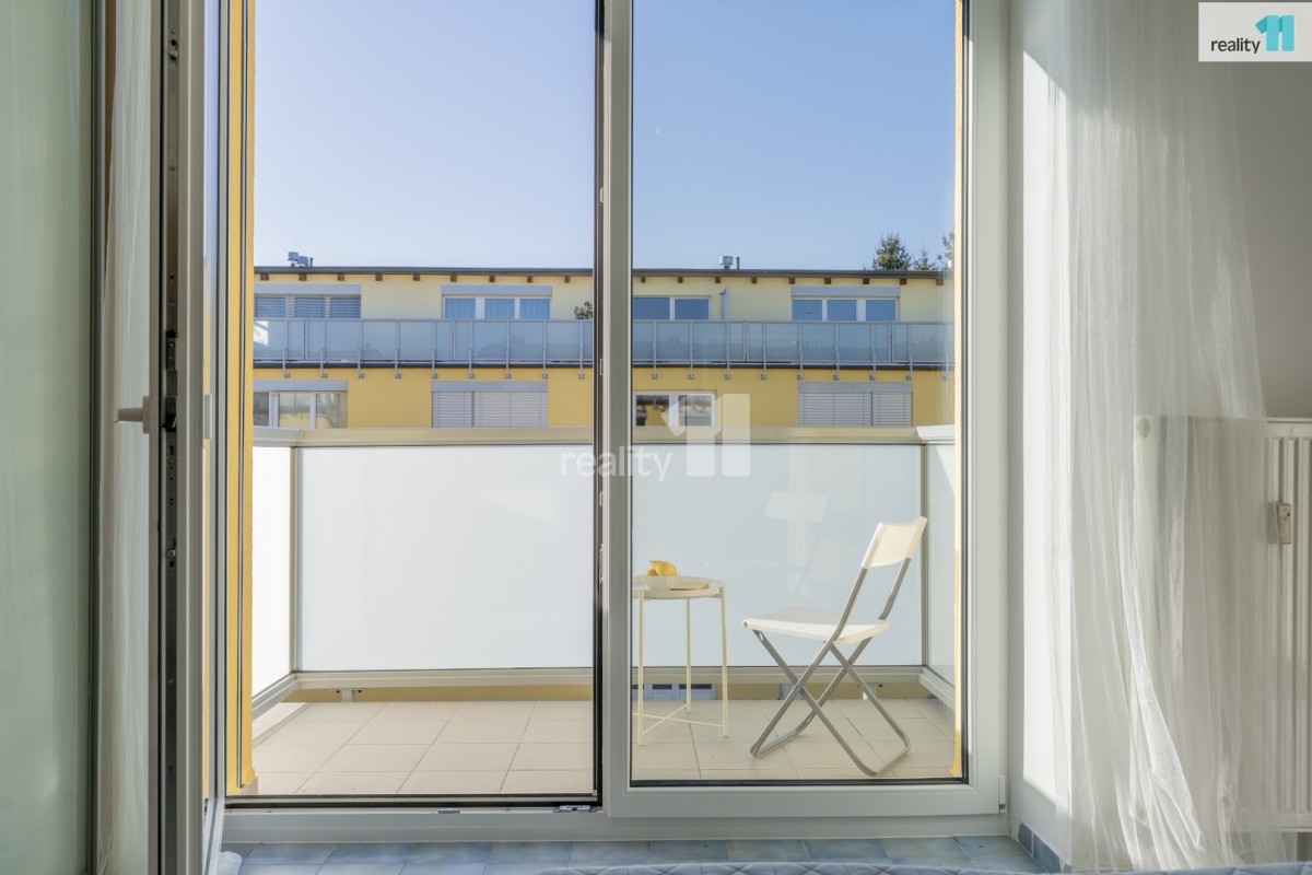 Ložnice působí klidným dojmem a je vybavena vestavěnou skříní po celé délce stěny. Právě z ložnice je přímý vstup na balkon, který nabízí příjemné soukromí a prostor pro ranní kávu nebo večerní relax. Další úložné prostory se nachází v předsíni. Koupelna je udržovaná, s vanou a místem pro pračku.
