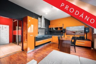 PRODÁNO - Moderní atypický mezonetový byt 2+kk s celkovou plochou 66 m2 nacházející se ve 2. a 3. patře bytového domu včetně výtahu, na ulici Masarykova, v Rudné..., pouhých 8 min od Prahy.