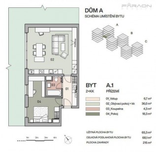 Byt v kvalitním provedení s vlastní zahradou, s důrazem na vzdušnost a světlo, ale i využití moderních technologií (fotovoltaika pro spotřebu ve společných prostorách).