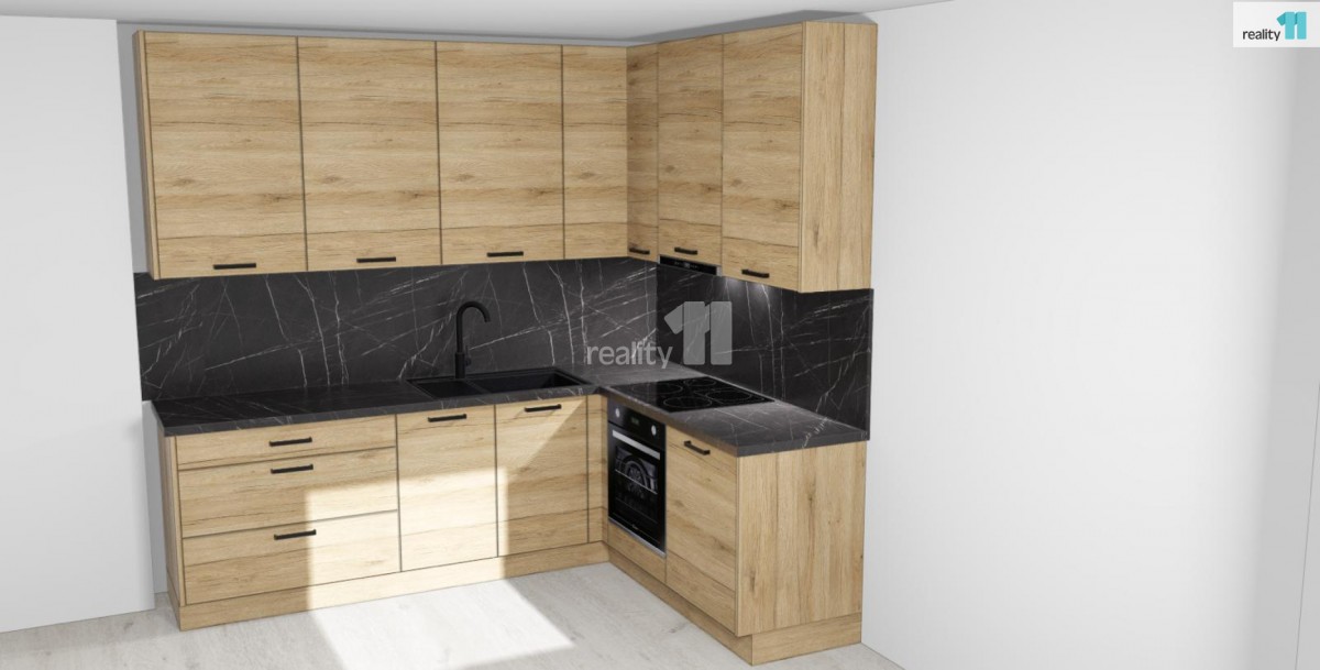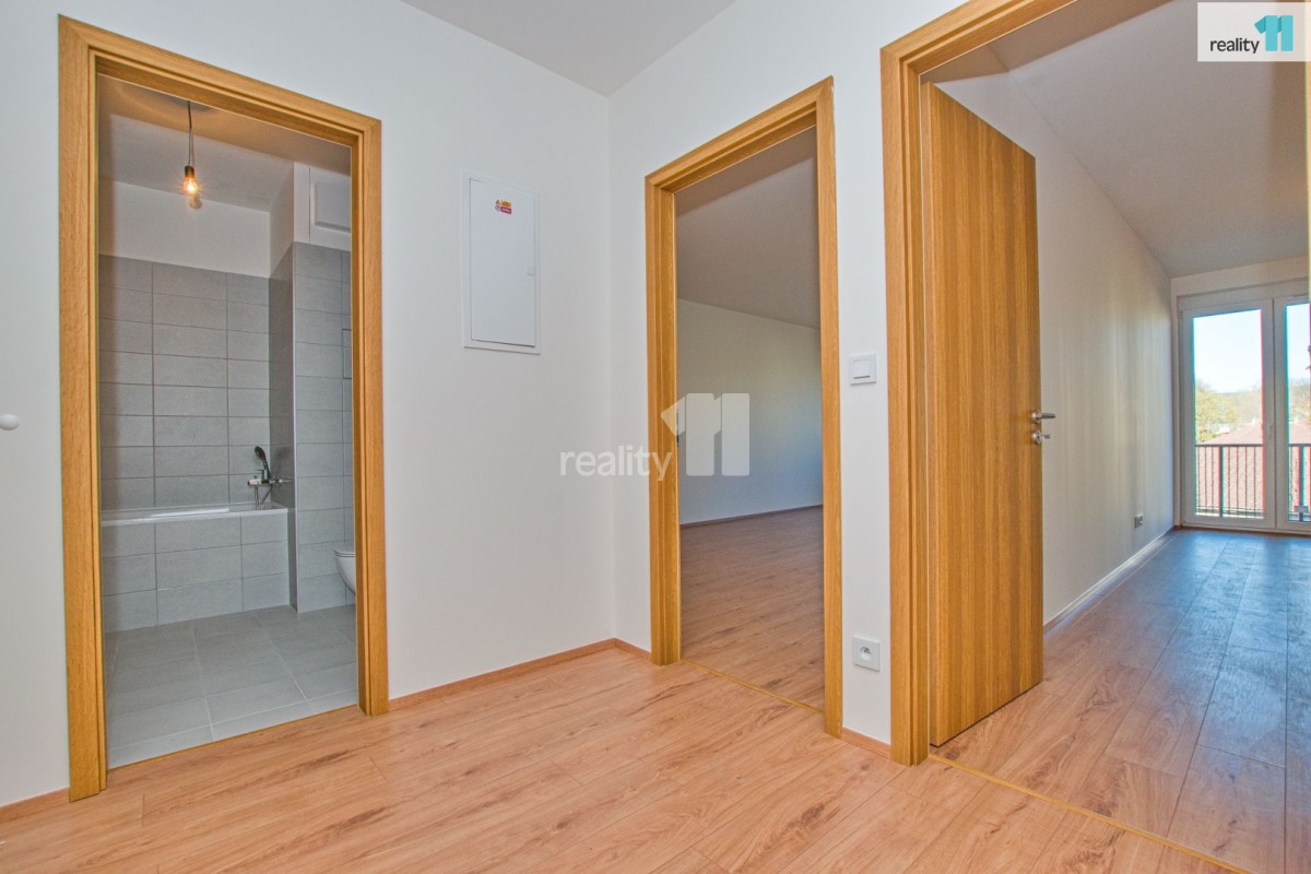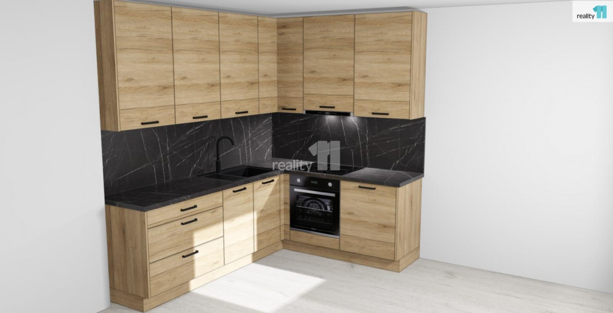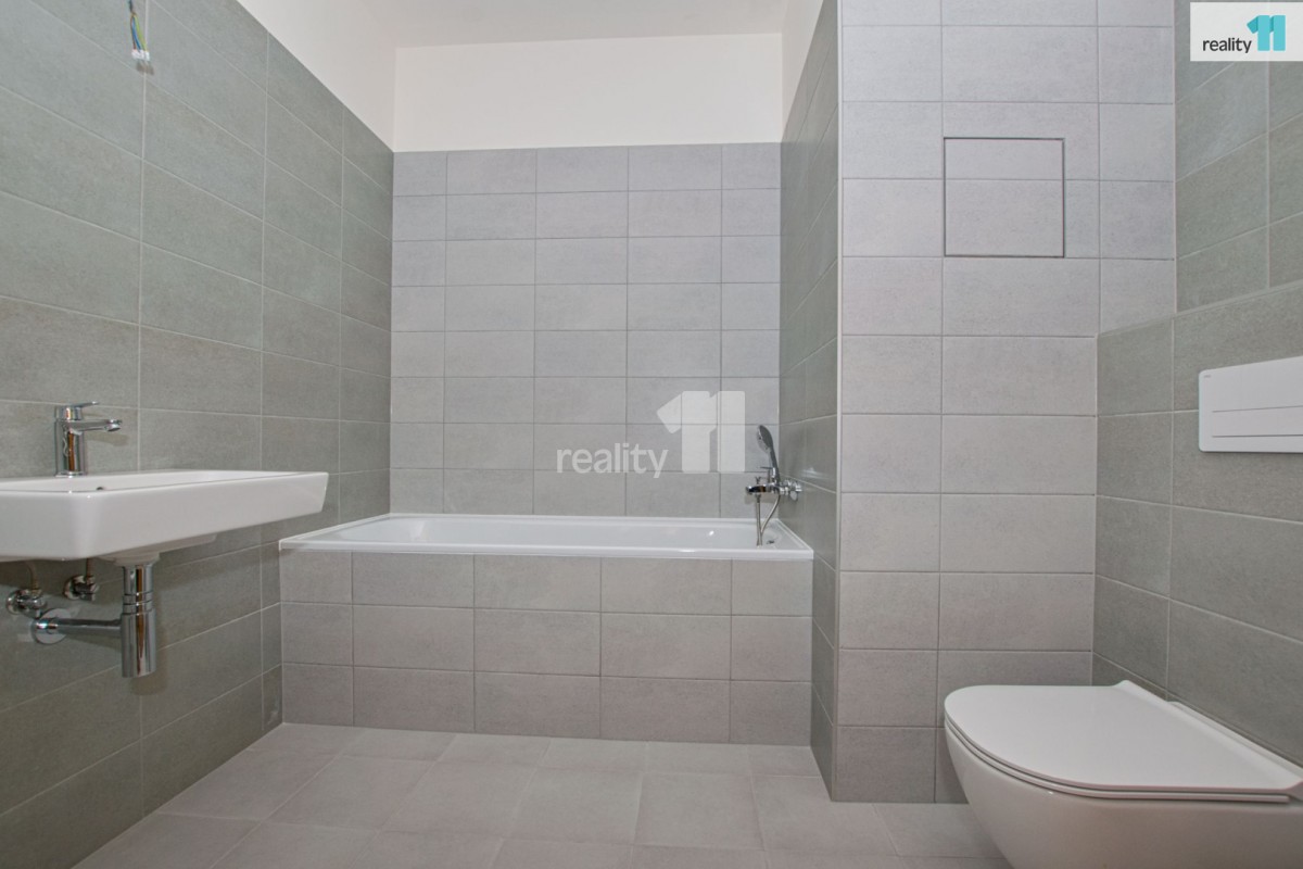 Technické vybavení: Izolační trojskla VEKRA, podlahy laminátové, hnědé obložkové zárubně a dveře, nízká energetická náročnost domu (třída B), dům je zateplen. Byt bude vybaven moderní kuchyňskou linkou dle uvedené vizualizace, což umožňuje budoucímu majiteli rychlé nastěhování, případně výhodu při budoucím pronájmu, v koupelně vana, místo pro pračku a sušičku, sociální zařízení WC.