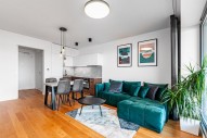 Nadstandartní vybavení zahrnuje designový nábytek zhotovený na míru, kompletní osvětlení, kompletně vybavenou kuchyňskou linku se všemi spotřebiči, myčka, dřevěné podlahy, podlahové vytápění v celém bytě, francouzská okna, centrální topení.