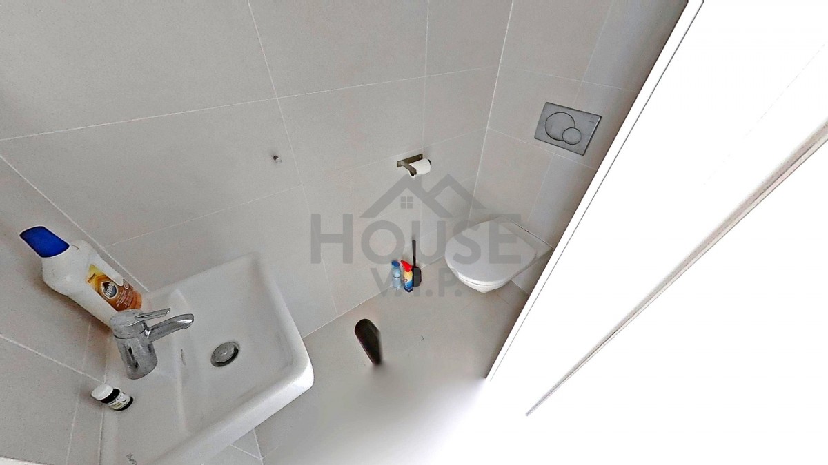 Dispozičně je byt rozdělen na dvě úrovně – ve spodním patře se nachází obývací pokoj s kuchyňským koutem, vstupní předsíň a samostatné sociální zařízení WC. Po dřevěných vnitřních schodech se dostaneme do dalšího patra, kde se nachází další pokoj, prostorná koupelna s vanou a druhým sociální zařízení WC s výhledem do vnitrobloku.