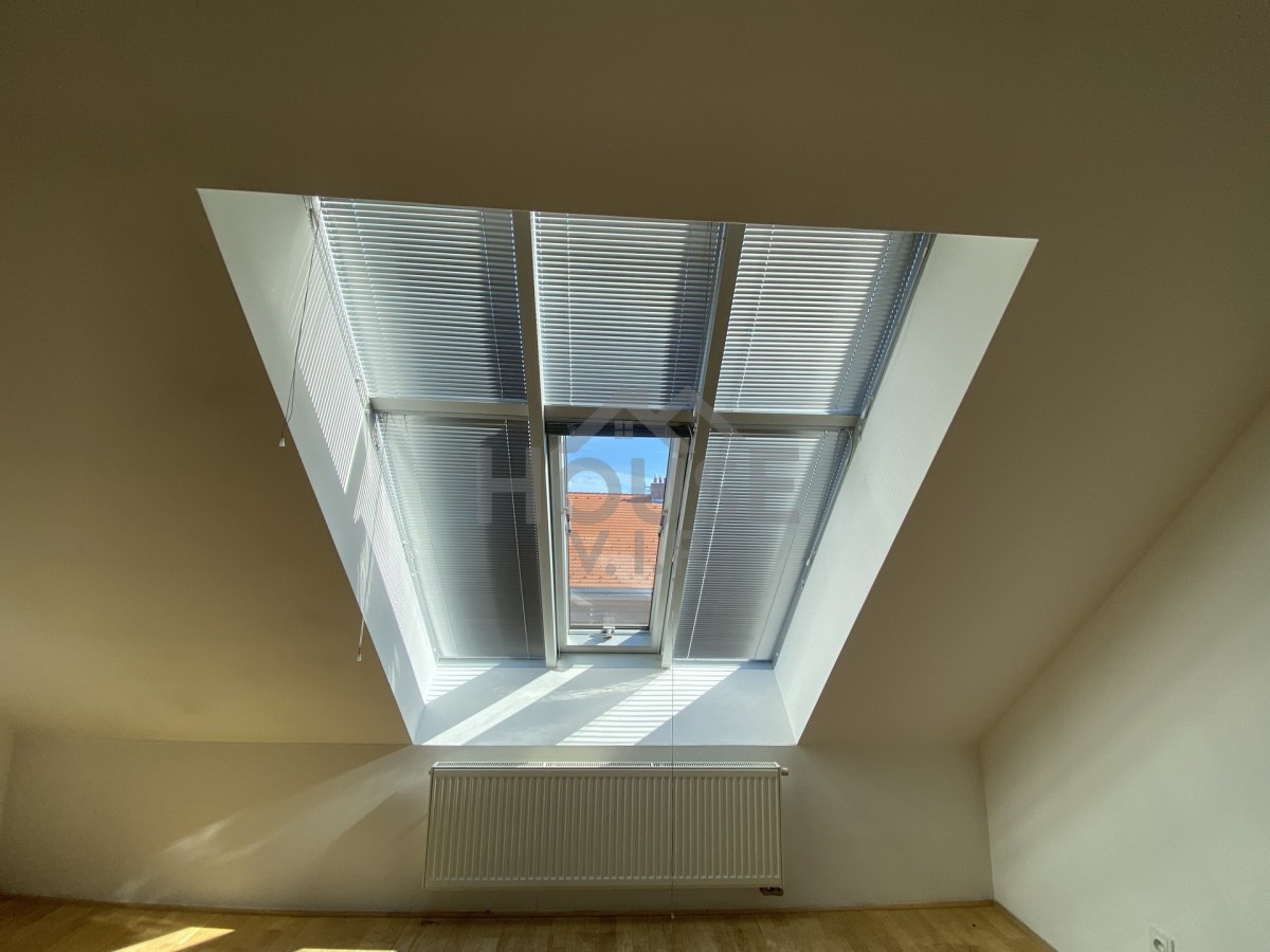 Prostor schodiště dodává interiéru vzdušný a prostorný nádech. Celý prostor se orientován od východu na západ což zaručuje dostatek světla po většinu dne i díky prosklenému vikýři v obývacím pokoji směrem na východ. Byt má instalovanou klimatizaci, která zpříjemní letní měsíce.