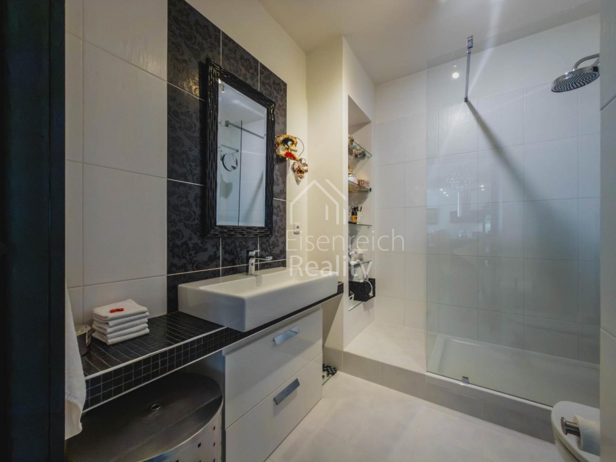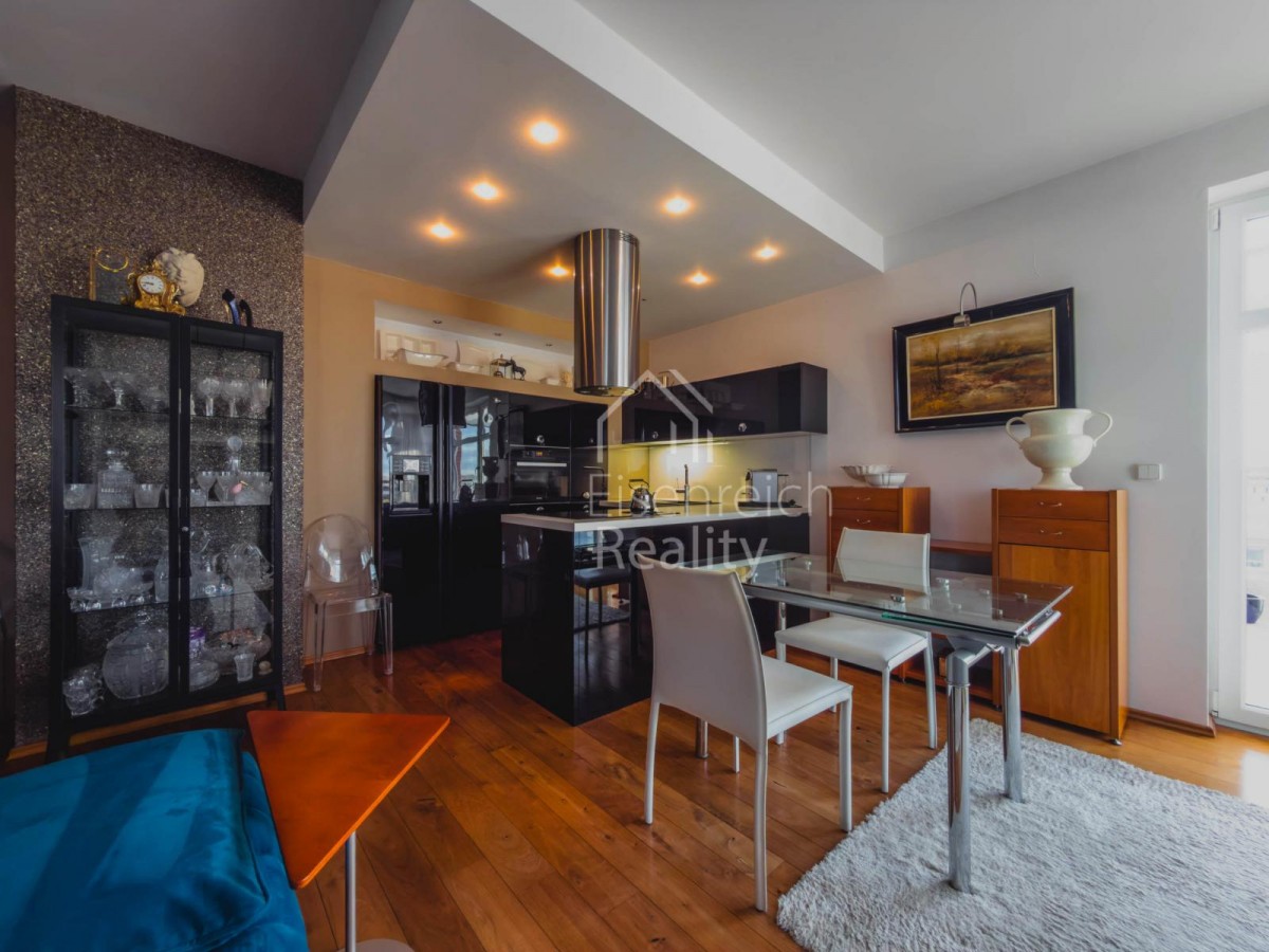 Byt prošel rozsáhlou a velice kvalitní rekonstrukcí s důrazem na detail a použití nadstandardních materiálů. Interiér doplňují dřevěné podlahy, kuchyňská linka na míru včetně vestavěných spotřebičů a moderní koupelna s prostorným sprchovým koutem a designovou sanitou značky Villeroy and Boch. V ložnici je instalována klimatizace, která zajišťuje komfort i v letních měsících.
