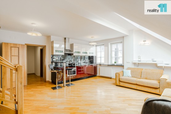Reality 11 Vám zprostředkují k prodeji světlý, mezonetový byt o dispozici 2+kk, 78 m², v lukrativní a vyhledávané části Prahy 1 - Nové Město. Byt s orientací do klidné ulic...e a s výhledem na historickou část města, se nachází v 6. a 7. NP (sedmé nadzemní patro) cihlového domu včetně výtahu. Byt se skládá z chodby, prostorného obývacího pokoje s kuchyňským koutem, ložnice, koupelny s vanou a sociální zařízení WC, komory. Galerie, přístupná po dřevěném schodišti, nabízí prostory nejen pro klimatizovanou ložnici, ale i pro pracovnu. Na podlahách kvalitní dřevěná podlaha a dlažba. Vzdušnost bytu a dostatek denního světla zajišťuje velké množství oken, zejména dominantní střešní okno v obývacím pokoji, které je jedním z prvků výjimečnosti. Hlavní předností této bytové jednotky jsou plně využitá dispozice a lokalita umístění. Veškerou občanskou vybavenost (MŠ, ZŠ, lékaře, obchody, restaurace aj. ) i velké množství městské zeleně a přírody i další volnočasovou zábavu, je tak možné nalézt v nejbližším okolí. Parkování je možné před domem nebo v nejbližším okolí. Jedinečné a moc hezké bydlení s výbornou dopravní dostupností. Doporučujeme. Ev. číslo: 26413. Energetický štítek: D
