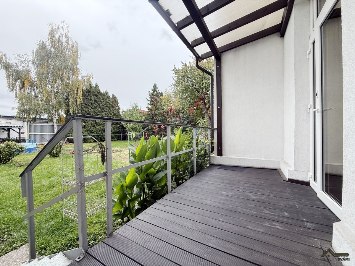Byt se nachází v 1. NP (první nadzemní patro)/2. NP (druhé nadzemní patro). K bytu patří terasa, 1/4 půdy a také 1/4 pozemku pod domem. Terasa je umístěna do vnitrobloku tudíž máte klid a soukromí.