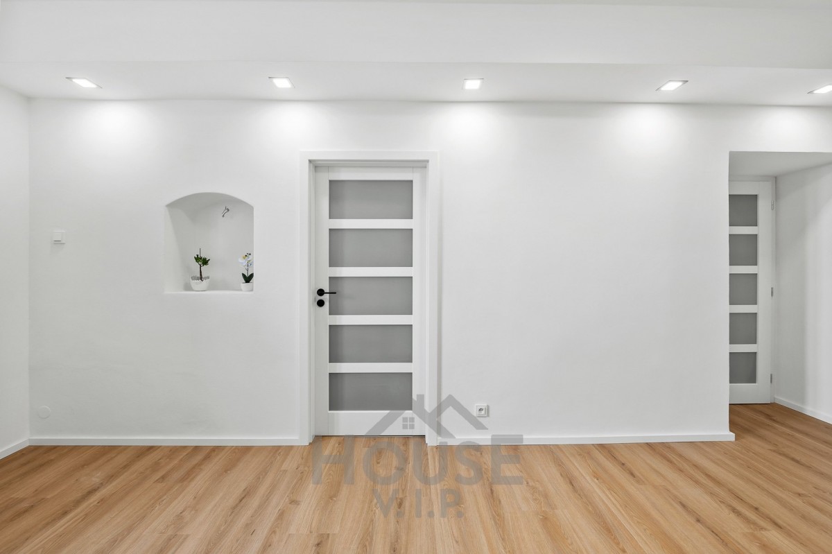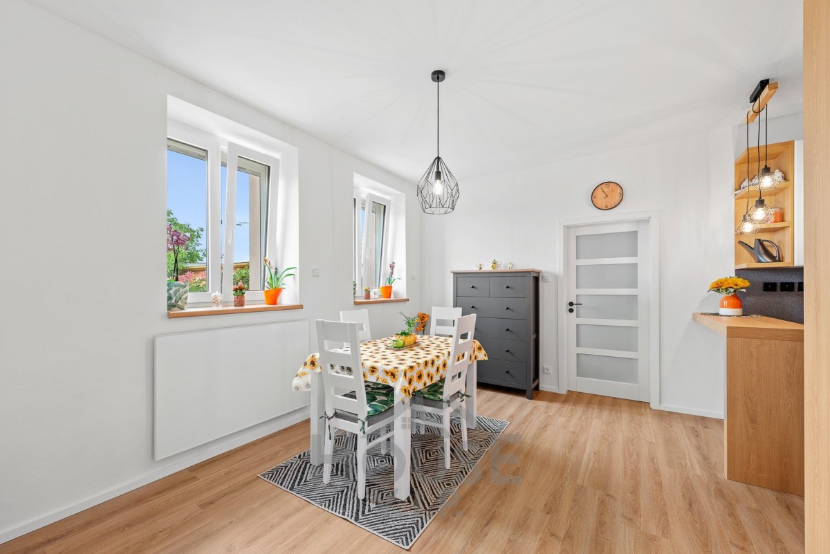 Nemovitost prošla kompletní rekonstrukcí – nové rozvody elektřiny a vody, podlahy, omítky, koupelna i kuchyňská linka. Komfort bydlení zvyšují venkovní žaluzie a příprava na instalaci vnitřního stínění.
