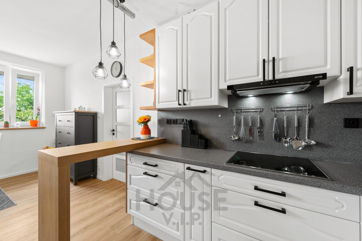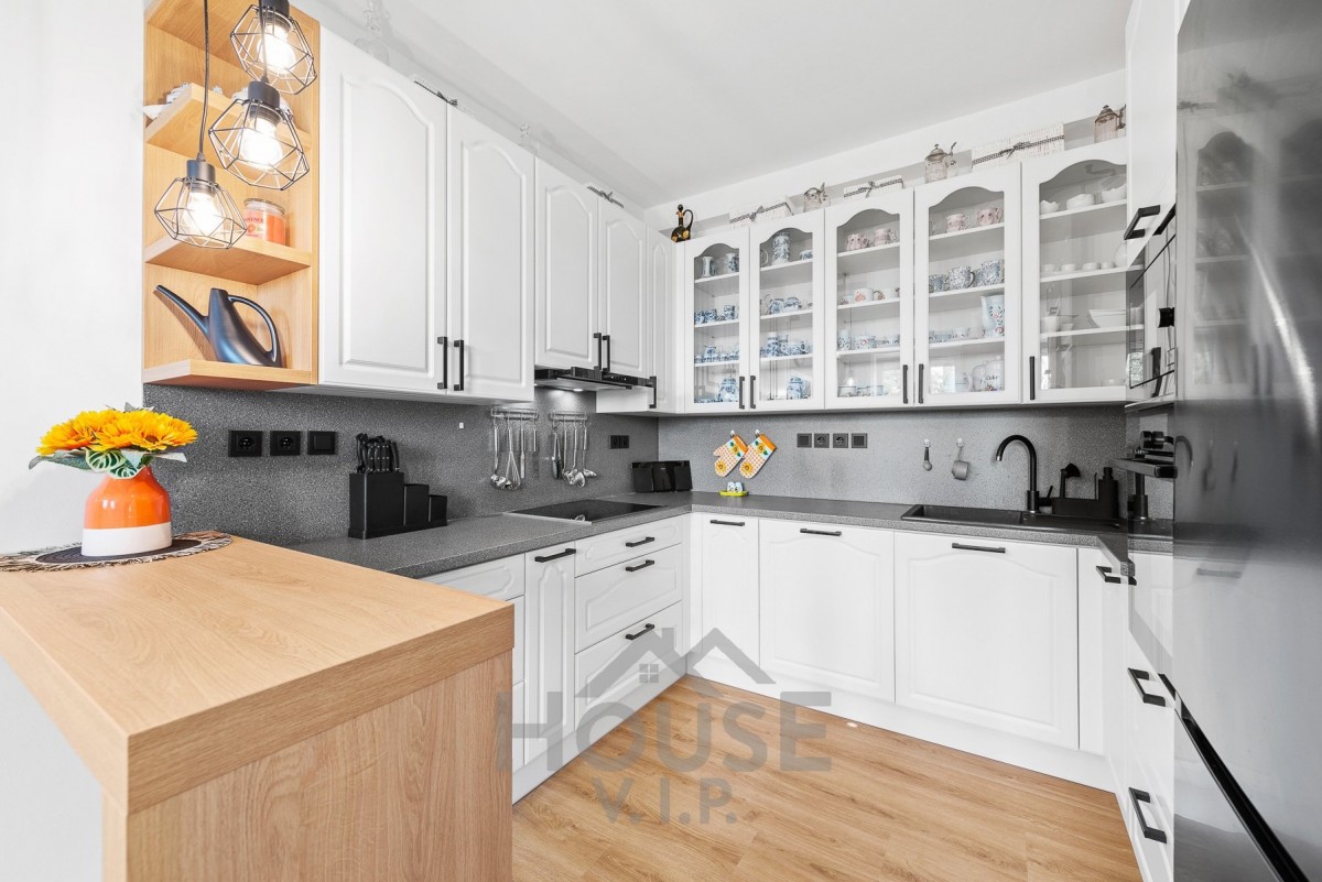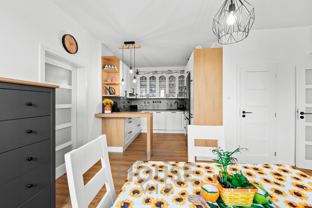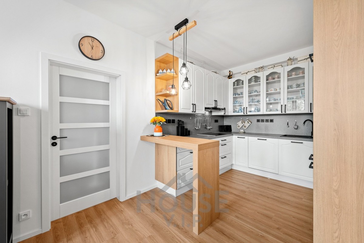 Byt o podlahové ploše 108 m² je situován v 1. nadzemním podlaží udržovaného domu. Dispozice zahrnuje tři samostatné pokoje, samostatnou kuchyni s jídelním koutem, koupelnu, komoru a dostatek úložných prostor. Kuchyň je vybavena moderní kuchyňskou linkou s vestavěnými spotřebiči značky Gorenje a tvoří praktické centrum celé domácnosti.
