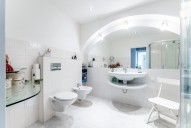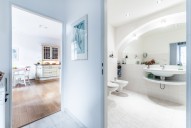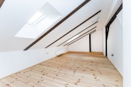Z chodby vedou schody do 1. patra, do ateliérku, který sestáva z místnosti s kuchyňkou a koupelnou s toaletou. Poskytne tak příjemné bydlení návštěvě, nebo jako samostaná jednotka k bydlení. Velkou předností bytu je slunná, prostorná terasa, která je situována stejně jako celý byt do klidného vnitrobloku, a poskytuje možnost klidného odpočinku a relaxace.