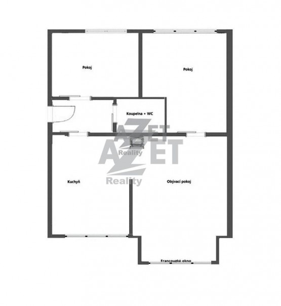 Byt 3+KK, pokoj s kuchyňským koutem, dětský pokoj, ložnice, koupelna s sociální zařízení WC, zádveří.