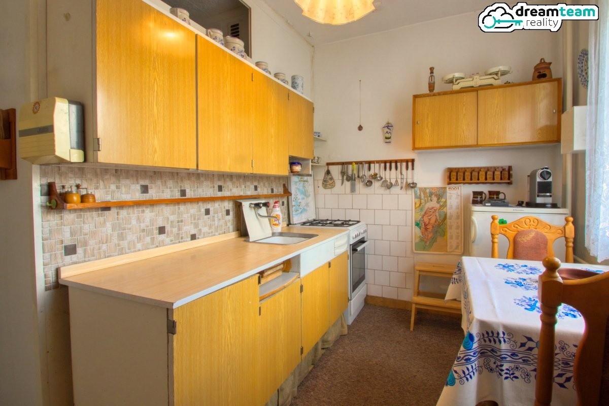 Kuchyně je pěkně prostorná a kromě běžné kuchyňské linky a místa pro jídelní stůl zde zůstala zachovaná i praktická spižírna. Podle rozumné cenovky asi chápete, že byt je v původním stavu, že? Je to klasické udržované seniorské bydlení, kde by se dalo nastěhovat a bydlet hned. Ale z mých zkušeností předpokládám, že nový majitel bude něco měnit. Přijďte a uvidíte sami.
