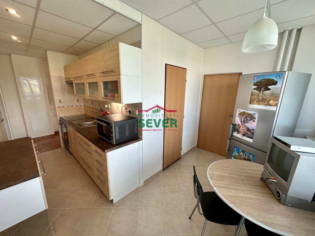 Nemovitosti SEVER vám zprostředkují koupi bytu s dispozicí 3+1 se třemi lodžiemi v osobním vlastnictví v Mostě v ul. U Věžových domů. Byt. jednotka s celkovou výměrou 63 metrů čtvere...čních se nachází ve čtvrtém nadzemním podlaží panelového domu se dvěma výtahy, situovaná v klidné části centra města. Byt prošel kompletní rekonstrukcí a skládá se z předsíně, šatny, odděleně řešené koupelny a toalety, obývacího pokoje, kuchyně, pokoje a ložnice. Obývací pokoj, kuchyně a pokoj disponují svou lodžií s výhledem na centrum města a hrad Hněvín. Rekonstrukce bytu zahrnuje elektroinstalaci v mědi, rozvody vody a odpadů, zděné jádro se sociálním zařízením v keramickém obkladu, zánovní kuchyňskou linku, podlahy v celém bytě, vstupní a interiérové dveře, žaluzie ve všech oknech, zasklené a revitalizované lodžie, snížený strop s bodovým osvětlením v kuchyni, koupelně a předsíni. V bytě zůstane veškeré fitness vybavení. K bytu náleží sklepní kóje. Výhodou jsou nízké náklady na bydlení. Byt je ihned volný k užívání po uhrazení kupní ceny. Dům, ve kterém se byt nalézá, prošel kompletní revitalizací. V okolí domu je dobré parkování a spousta zeleně. Veškerou občanskou vybavenost nalezneme v v blízkém dosahu. V případě zájmu zajistíme optimální variantu financování na tuto nemovitost za zvýhodněných podmínek pro naše klienty.