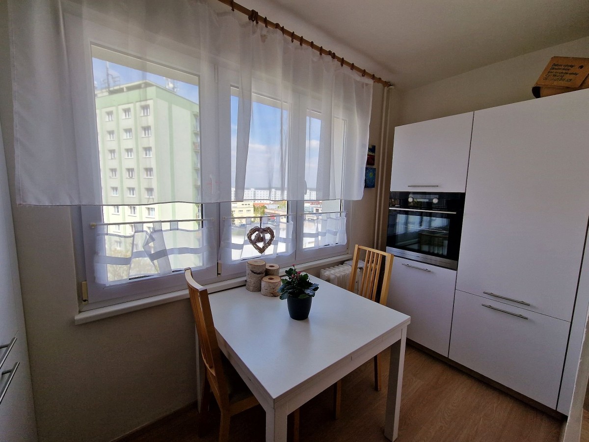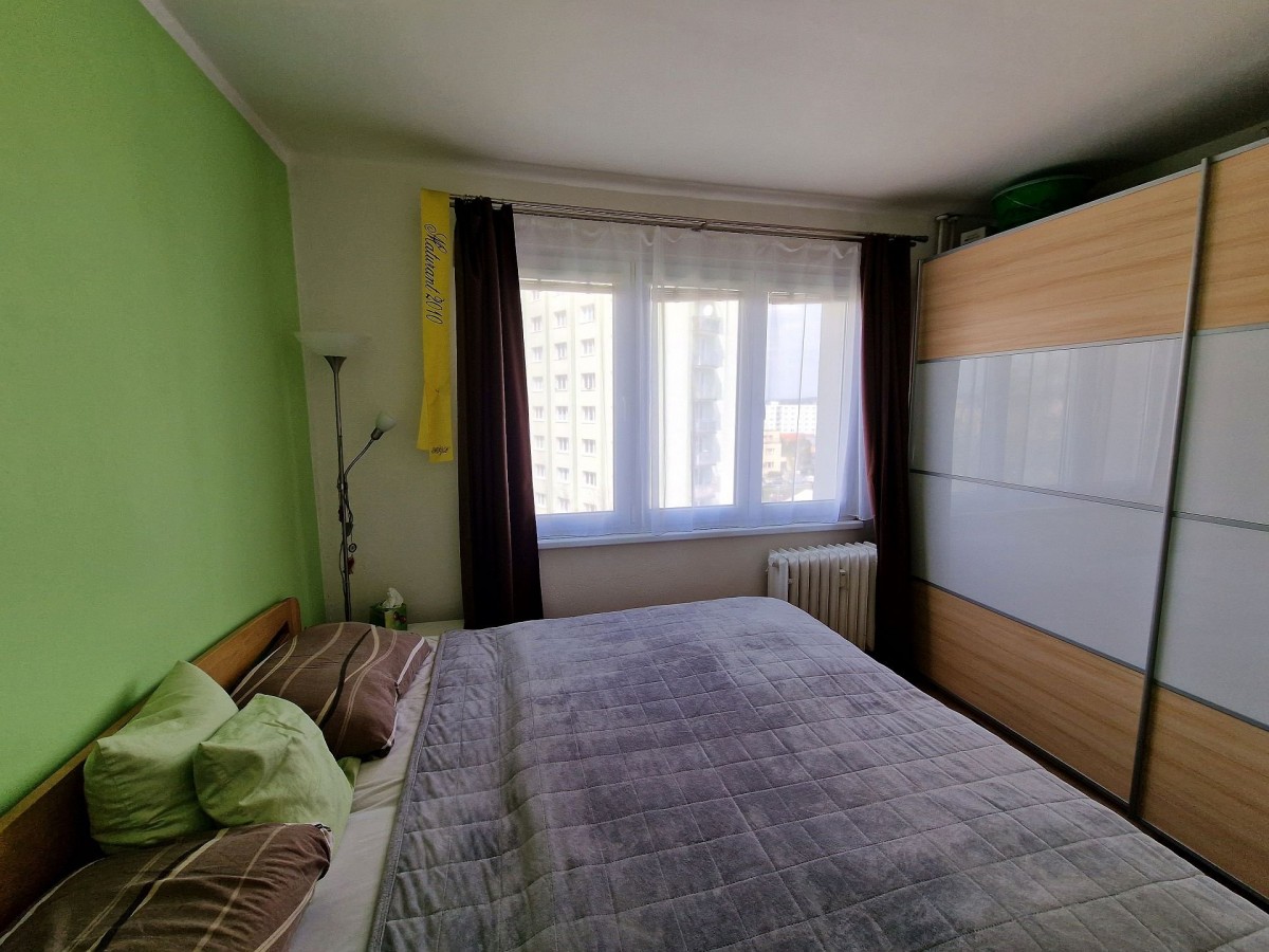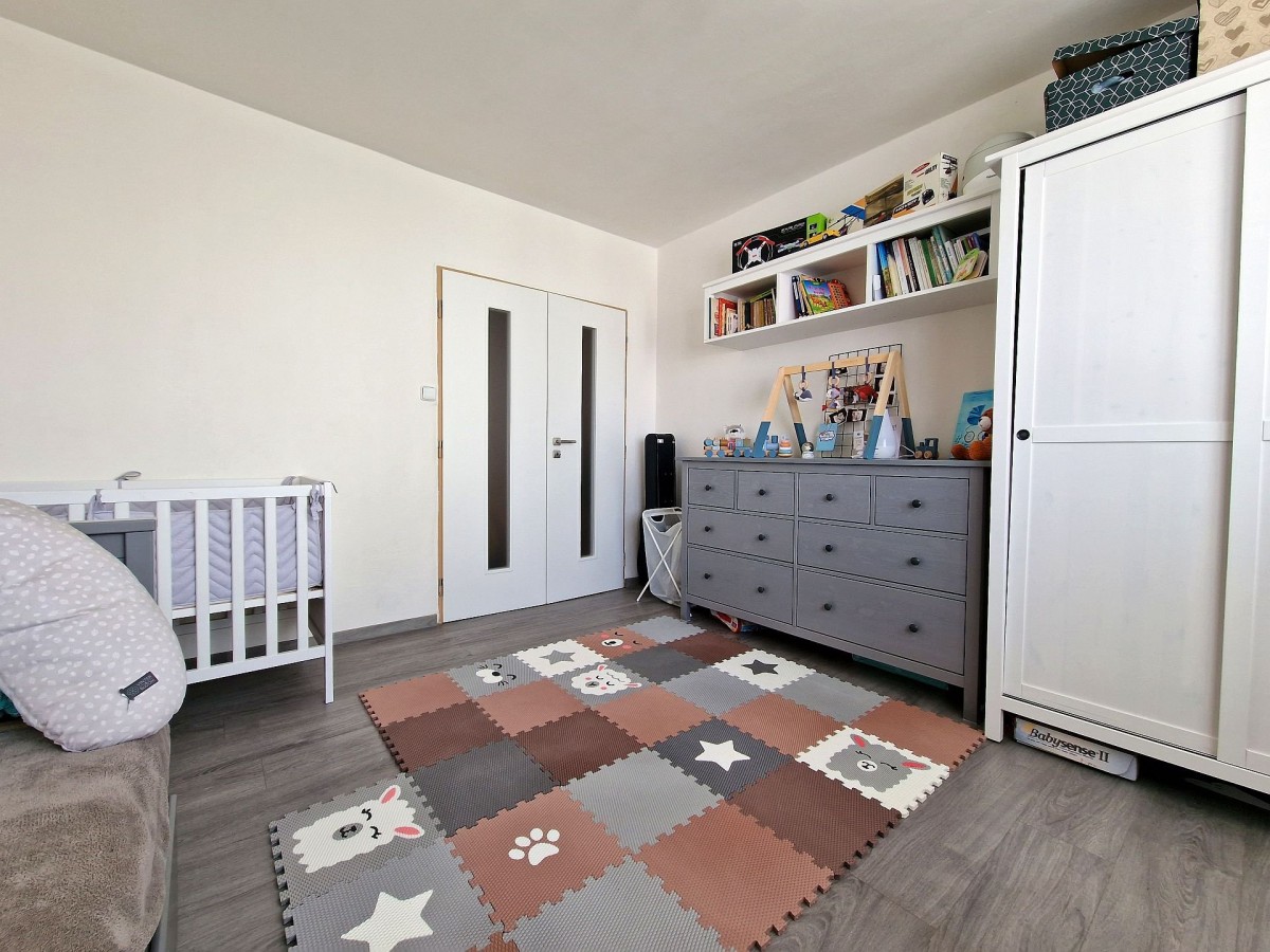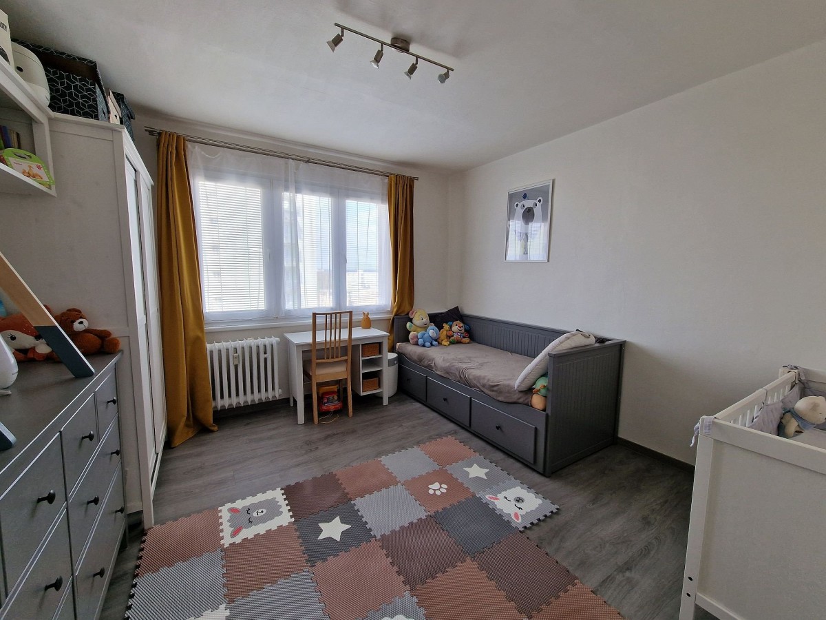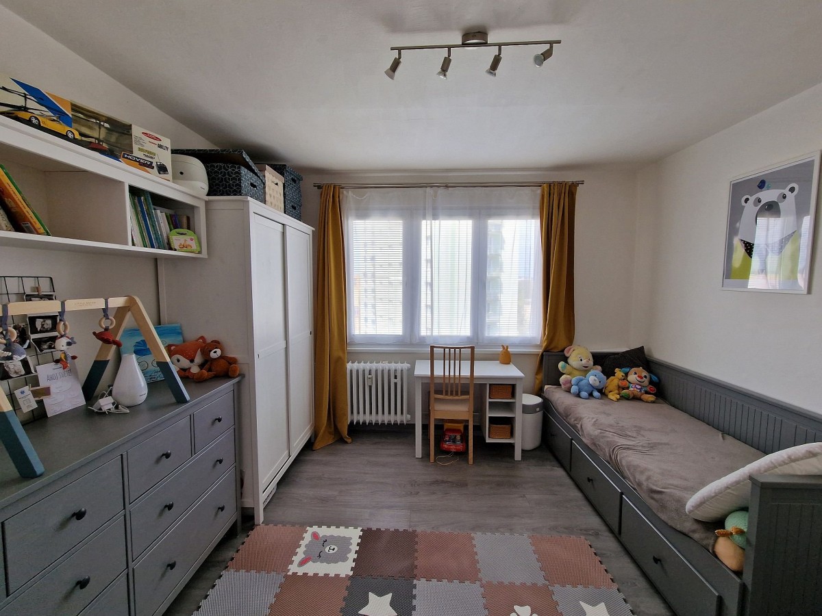 Po vstupu do bytu Vás příjemně překvapí moderní a svěží design bytu. V kuchyni je téměř nová kuchyňská linka, která je vybavena vestavěnými spotřebiči jako je elektrická varná indukční deska, elektrická trouba, myčka na nádobí, vestavěná lednice, digestoř a mnoho úložných prostor důmyslně rozmístěných v kuchyni. V obývacím pokoji je vstup na balkon o velikosti cca 2, 3 m2 s výhledem na město, kde je možné trávit chvíle relaxace a odpočinku. Do ložnice se vchází z obývacího pokoje. Dětský pokoj má samostatným vstup z předsíně. V modernizované koupelně se sprchovým koutem, toaletou a umyvadlem je místo i pro pračku se sušičkou. Ve vstupní předsíni je dostatek místa pro šatní skříň, věšák, zrcadlo atd. Podlahu v bytě kryje vinylová podlaha nebo dlažba.