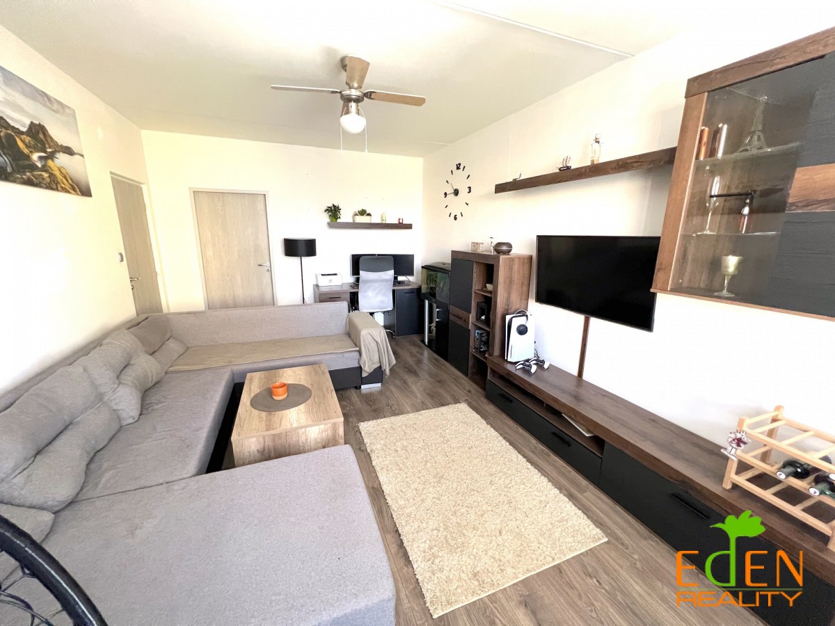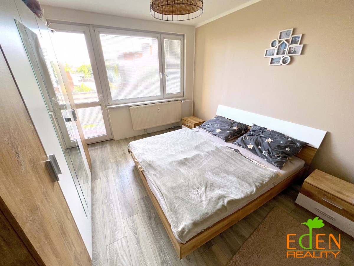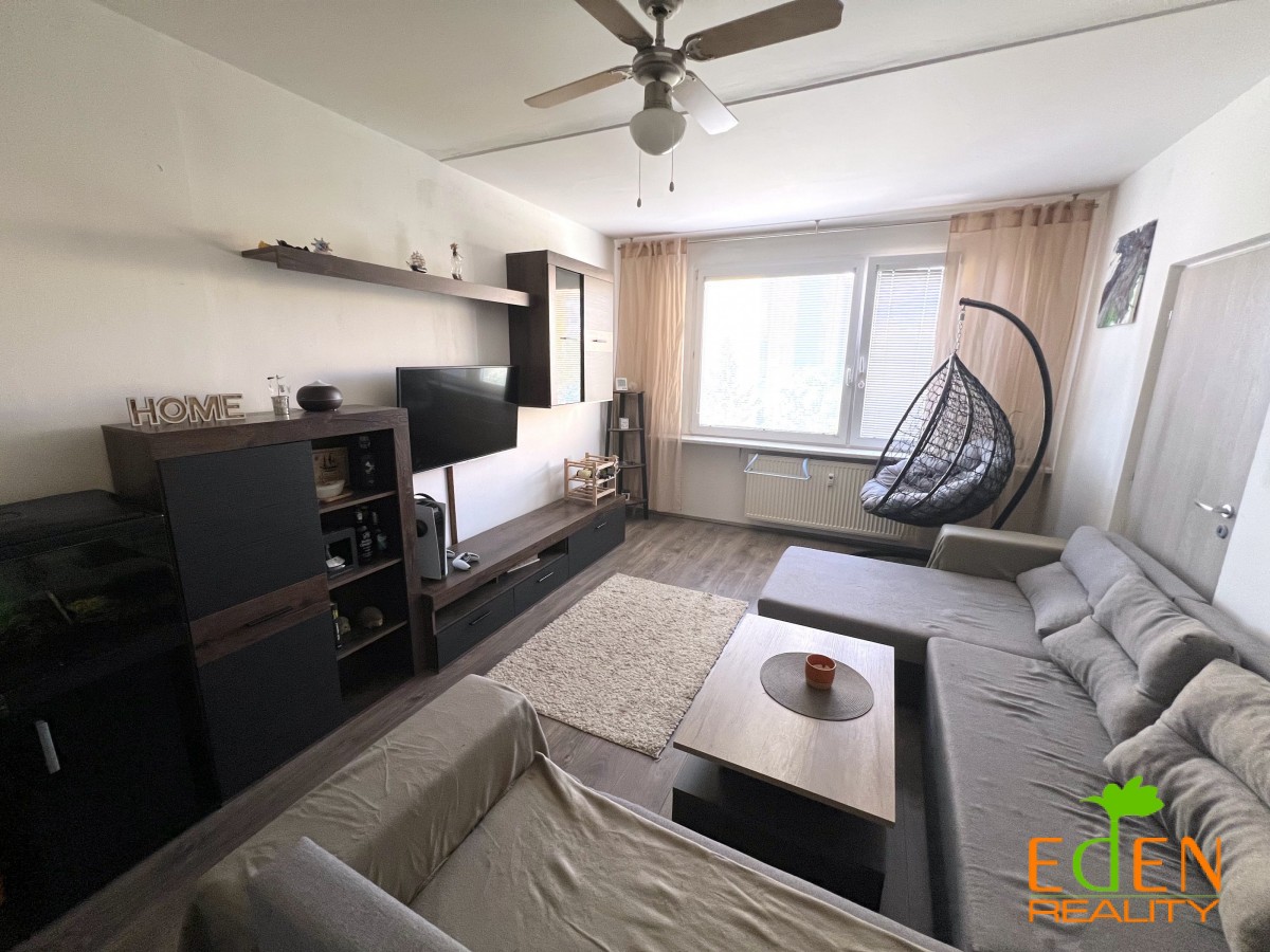 Dispozice: prostorná vstupní předsíň s úložným a odkládacím prostorem, přímý vstup do obývacího pokoje, ložnice s lodžií, kuchyně průchozí do dětského pokoje. Koupelna s vanou, umyvadlem, přípojkou na pračku a toaletou.