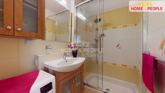 Byt prošel v roce 2016 kompletní rekonstrukcí, od koupelny až po novou moderní kuchyni s vestavnými spotřebiči. V celém bytě je nový zakázkový nábytek na míru a spousta vestavného úložného prostoru.