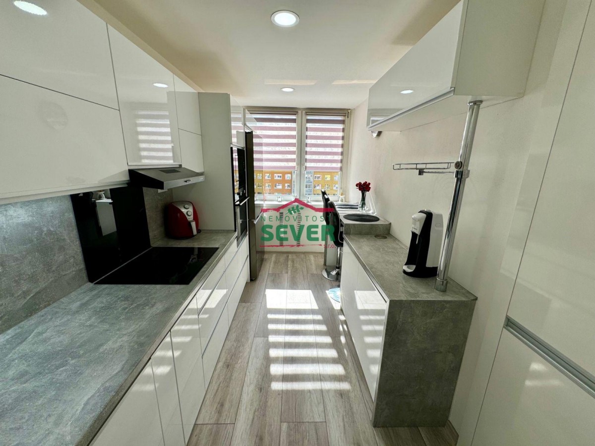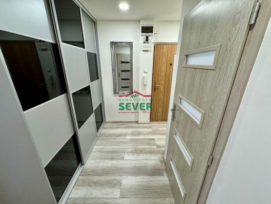 Nemovitosti SEVER vám zprostředkují koupi bytu s dispozicí 3+1 se zasklenou lodžií v družstevním vlastnictví v Mostě v ul. Josefa Ševčíka. Byt s výměrou 68 metrů čtverečních se nachá...zí v pátém nadzemním podlaží panelového domu včetně výtahu v klidné části města. Byt prošel nákladnou rekonstrukcí a skládá se z předsíně, společně řešené koupelny s toaletou, pokoje se vstupem do zasklené lodžie s posezením, ložnice, obývacího pokoje a kuchyně. Rekonstrukce bytu zahrnuje elektroinstalaci v mědi, rozvody vody a odpadů, zděné jádro se sociálním zařízením v keramickém obkladu, kuchyňskou linku s vestavěnými spotřebiči a barovým pultem, plovoucí podlahy v celém bytě, položené lino v lodžii, interiérové dveře s obložkovými zárubněmi, zatahovací rolety den/noc na všech oknech, snížené stropy s bodovým osvětlením a vestavěné skříně v předsíni a ložnici. K bytu náleží komora v chodbě domu a sklepní kóje. Dům, ve kterém se byt nachází, prošel kompletní revitalizací. Veškerou občanskou vybavenost nalezneme v docházkové vzdálenosti do 10 - ti minut od domu. V těsné blízkosti domu je dále spousta zeleně, dětské hřiště, rekreačně - sportovní areál Benedikt a sportovní centrum Tornádo Most. Centrum města je vzdálené 4 minuty jízdy automobilem. V případě zájmu zajistíme optimální variantu financování na tuto nemovitost za zvýhodněných podmínek pro naše klienty.