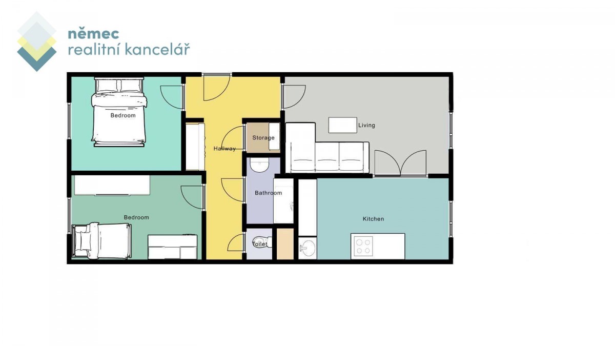 Úložné prostory poskytne komora v bytě (2, 18 m²) a dále k bytu náleží uzamykatelná komora (1, 20 m²) přímo naproti bytu.