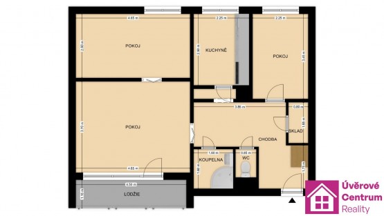 Dispozice: chodba, šatna, pokoj, kuchyň, toaleta, koupelna, pokoj, pokoj a lodžie. Půdorys bytu naleznete ve fotogalerii.