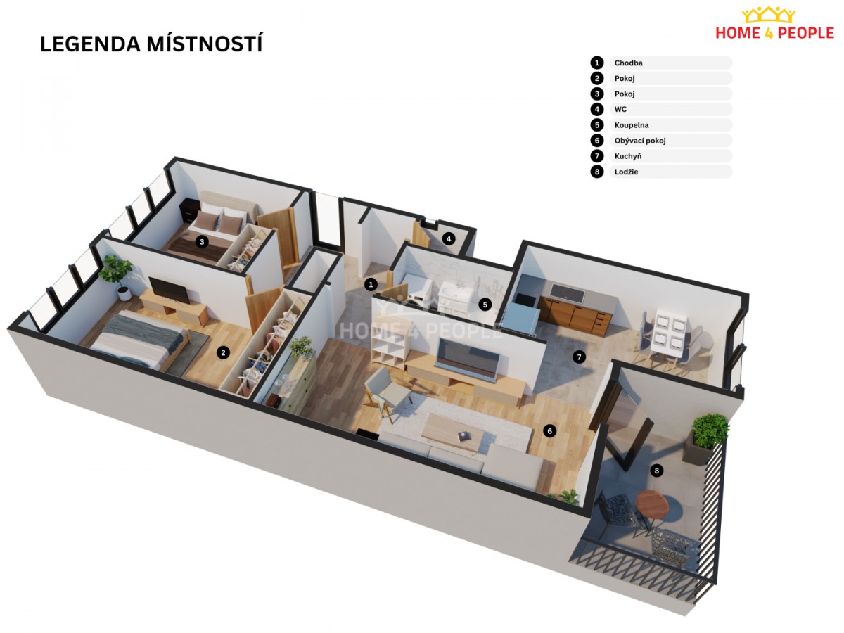 Další výhodou je společná lodžie (cca 12 m²) umístěná hned vedle bytu na chodbě – ideální například pro sušení prádla.