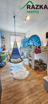 Byt tvoří vstupní chodba, kuchyně, koupelna a sociální zařízení WC, obývací pokoj, ložnice a dětský pokoj. V ceně je zahrnuta kuchyňská linka se spotřebiči.