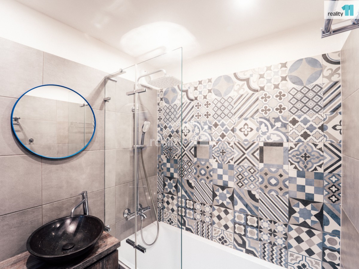 Celý byt prošel nákladnou a zdařilou rekonstrukcí - nové podlahy, omítky, elektroinstalace, zděné jádro, plastová okna s vnitřními roletami Den a Noc, koupelna s vanou, samostatné sociální zařízení WC, plně vybavená rohová kuchyně s vestav. spotřebiči a jídelním koutem, praktická středová chodba s komorou, oddělující dva menší pokoje - ložnici (8, 9 m²), dětský pokoj (12, 1 m²) od prostorného obývacího pokoje (16, 3 m²) s velkou lodžií (6, 0 m²) orientovanou na jih. Příslušenstvím bytu je velká sklepní kóje (2, 9 m²).