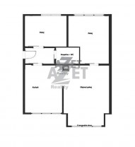 Dispozice: pokoj s kuchyňským koutem a francouzským oknem, 2 krát ložnice, koupelna s sociální zařízení WC, zádveří, pro představu půdorys v inzerci.