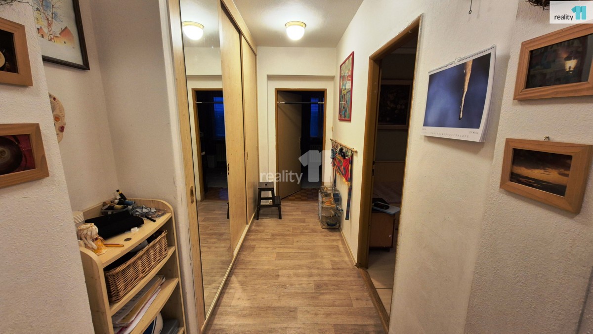 Prostorná chodba s vestavnými skříněmi cca 11 m² z niž se jde do plně vybavené kuchyně 12 m², dětského pokoje 13, 4 m², obývacího pokoje 19, 1 m², koupelny a samostatného sociální zařízení WC. Z obývacího pokoje do ložnice 11, 8 m² a na prostornou lodžii ze které večer při kávě lze pozorovat výhled na město při západu slunce. . .