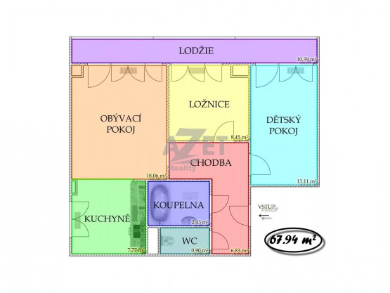 Celková plocha bytu - 67, 94 m2