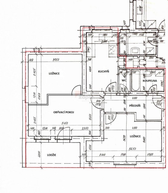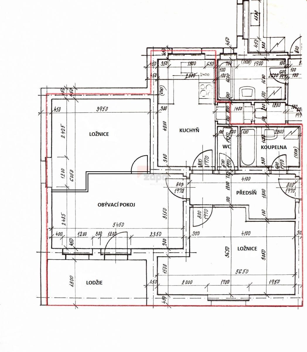 Původní dispozice bytu byla 2+1, nyní je 3+1, když byla postavena příčka v obývacím pokoji.