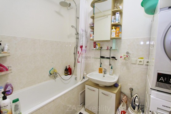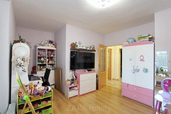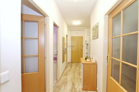 Obývací pokoj s lodžií a jedna ložnice jsou orientovány na západ, do klidné ulice.