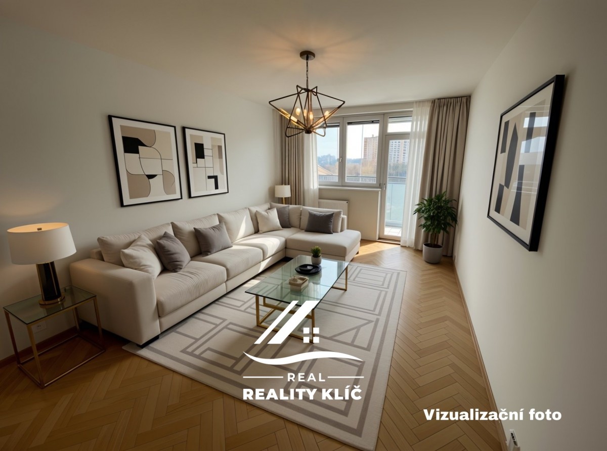 Z obývacího pokoje je vstup na zasklený balkón s příjemným výhledem. Dva další pokoje lze využít jako ložnici a dětský pokoj nebo pracovnu.