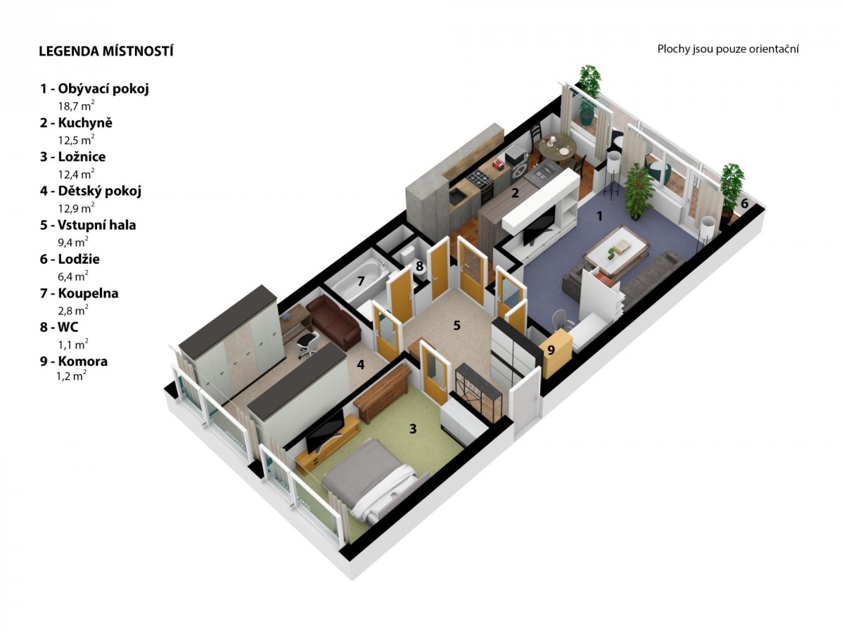 3+1, 76 m2, panelová, OV, 6. podlaží