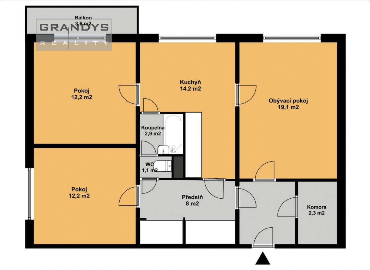 3+1, 76 m2, panelová, OV, 3. podlaží