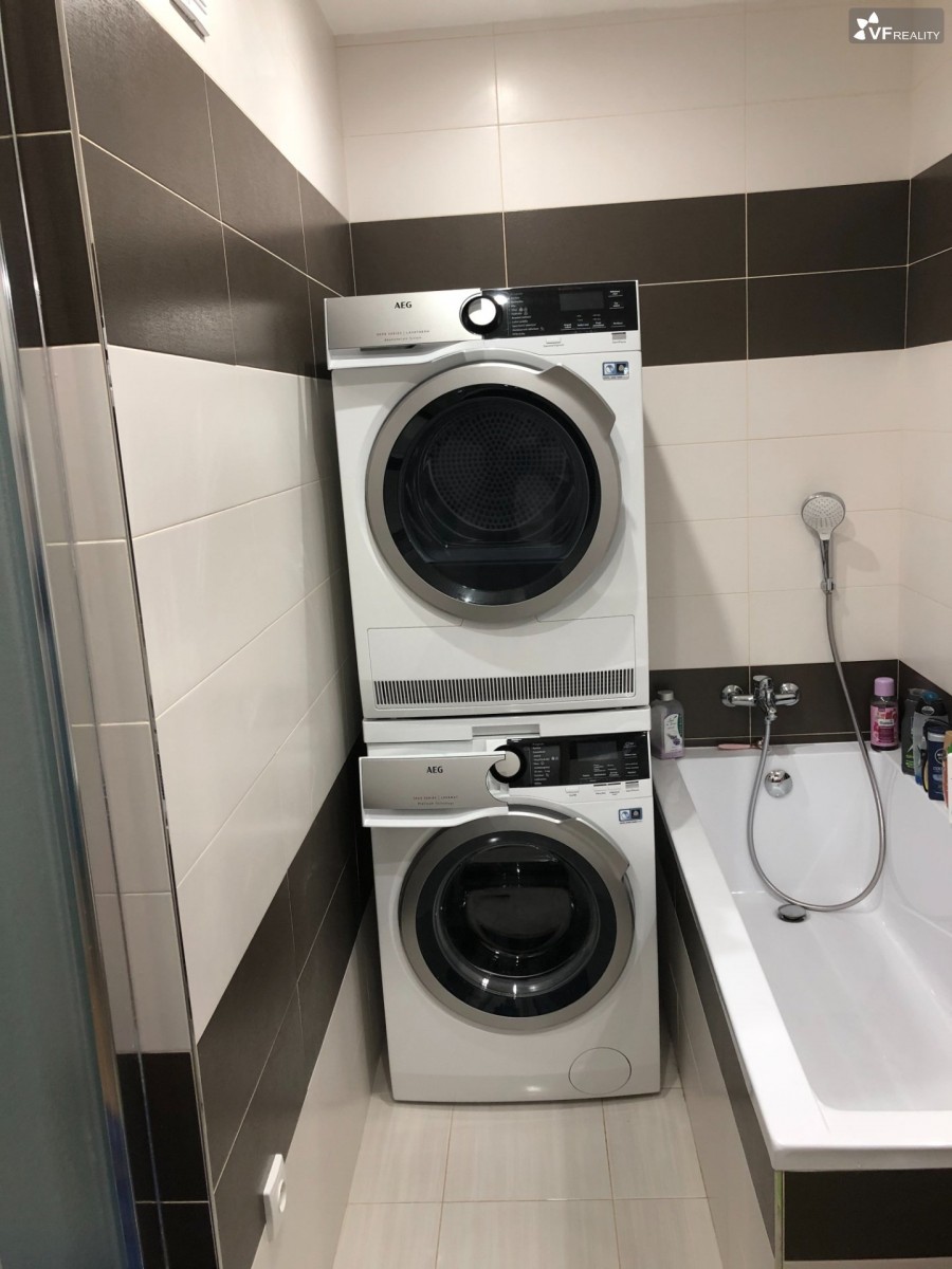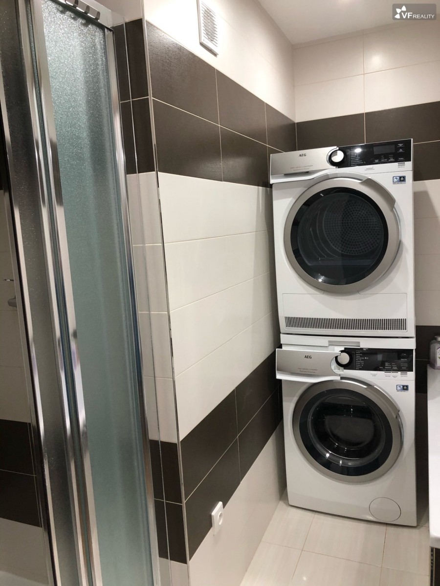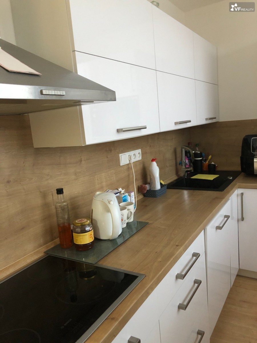 Byt je po zdařilé rekonstrukci (kuchyňská linka, koupelna, nové plovoucí podlahy, obložky, interiérové dveře, vstupní požární dveře, vestavěné skříně). Je částečně vybaven nábytkem na míru, který je součástí kupní ceny.