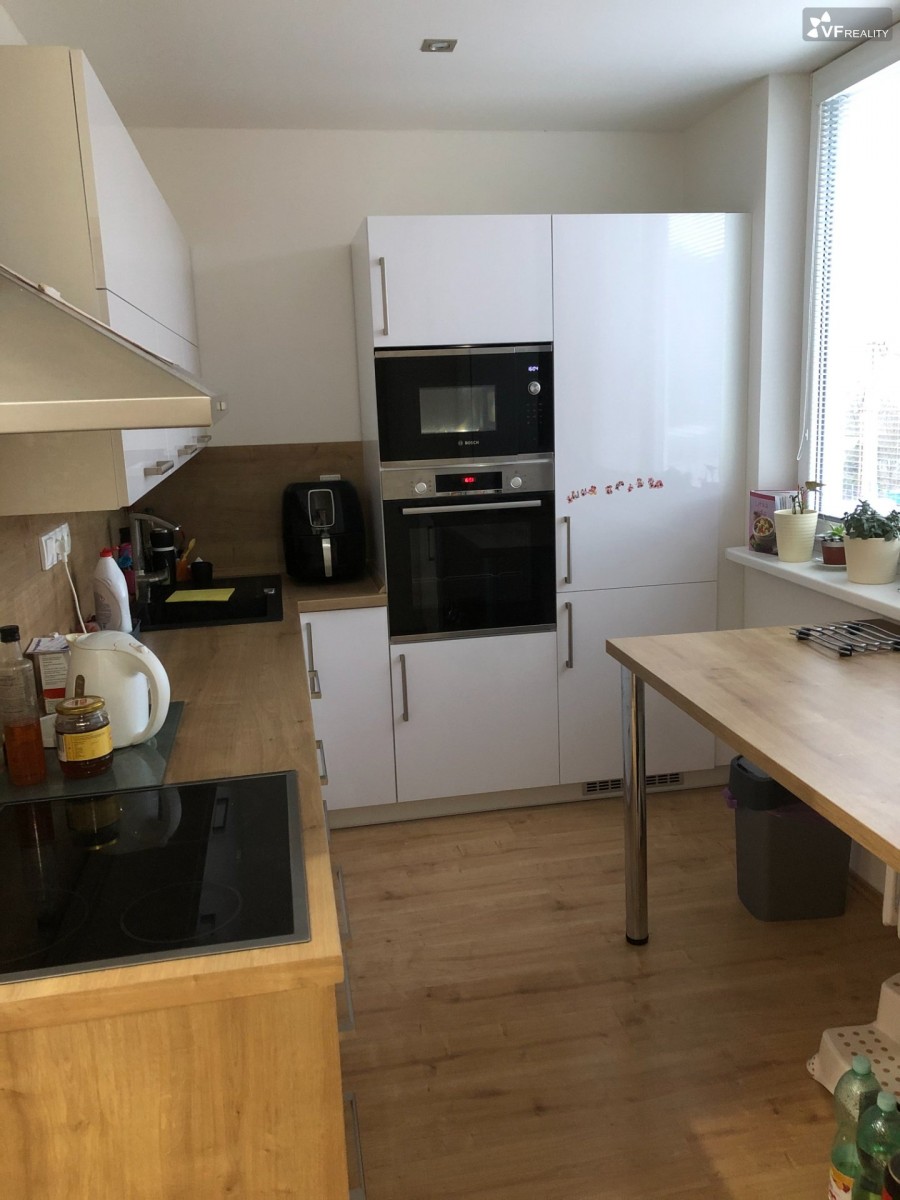 I z obývacího pokoje se vstupuje do moderně řešené kuchyně. Koupelna s vanou a sprchovým koutem. sociální zařízení WC je samostatné .