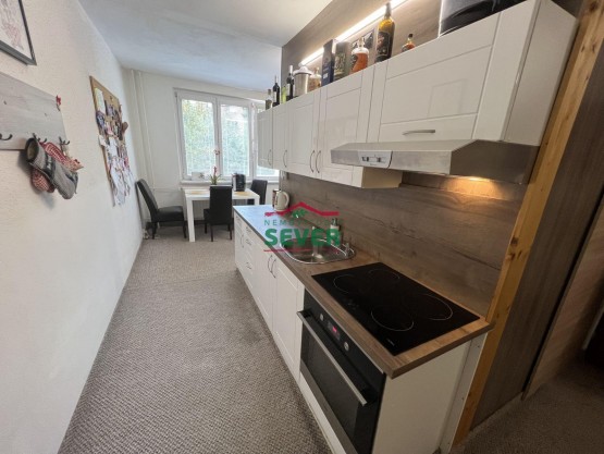Nemovitosti SEVER vám zprostředkují prodej bytu 3+1 v osobním vlastnictví, Jirkov, okr. Chomutov, ul. Hornická. Byt. jednotka po částečné rekonstrukci, o výměře 77 m2..., se nachází ve čtvrtém nadzemním podlaží panelového domu bez výtahu a jeho součástí je lodžie a sklepní kóje. V bytě jsou plastová okna, žaluzie, nové interiérové dveře, rozvody vody, omítky, na zemi jsou koberce. Koupelna a sociální zařízení WC jsou společné v umakartovém jádru. Je zde nová skříňka s umyvadlem, zásuvné dveře, částečný keramický obklad. V rohové kuchyni je nová linka, elektrický sporák s indukční deskou a prostor na jídelnu. Dům po kompletní revitalizaci bez problémových nájemníků se nachází v klidné části města. V případě zájmu zajistíme optimální financování našimi poradci.