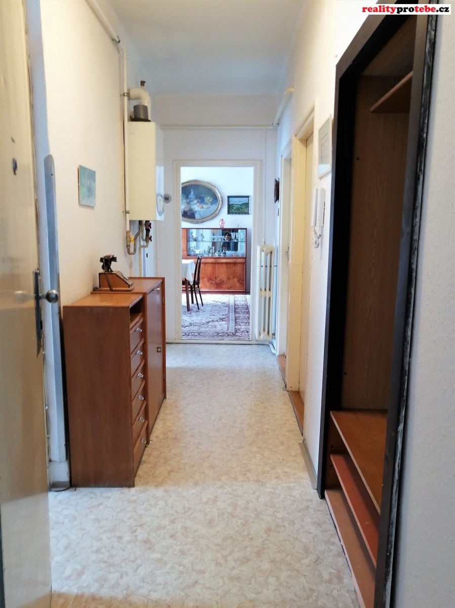 K bytové jednotce nabízející 77, 57 m2 celkové podlahové plochy náleží vyjma 3 pokojů, kuchyně, lodžie a sklepa také samostatná toaleta a koupelna s vanou a umyvadlem. Vnitřní chodba spojující všechny místnosti je mj. prosvětlena celoskleněnými francouzskými dveřmi. Vytápění bytové jednotky je zajištěno vlastním plynovým kotlem, ohřev teplé vody elektrickým bojlerem, což umožňuje efektivní snížení nákladů na bydlení. Na podlaze parketová podlaha, dlažba a koberce. Byt je v původním udržovaném stavu.
