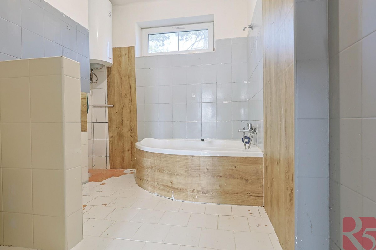 Koupelna má okno je s vanou a lze oddělit toaletu.