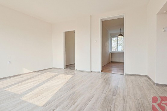 Velkou výhodou je praktická dispozice bytu, která umožňuje 3 samostatné pokoje a kuchyň.